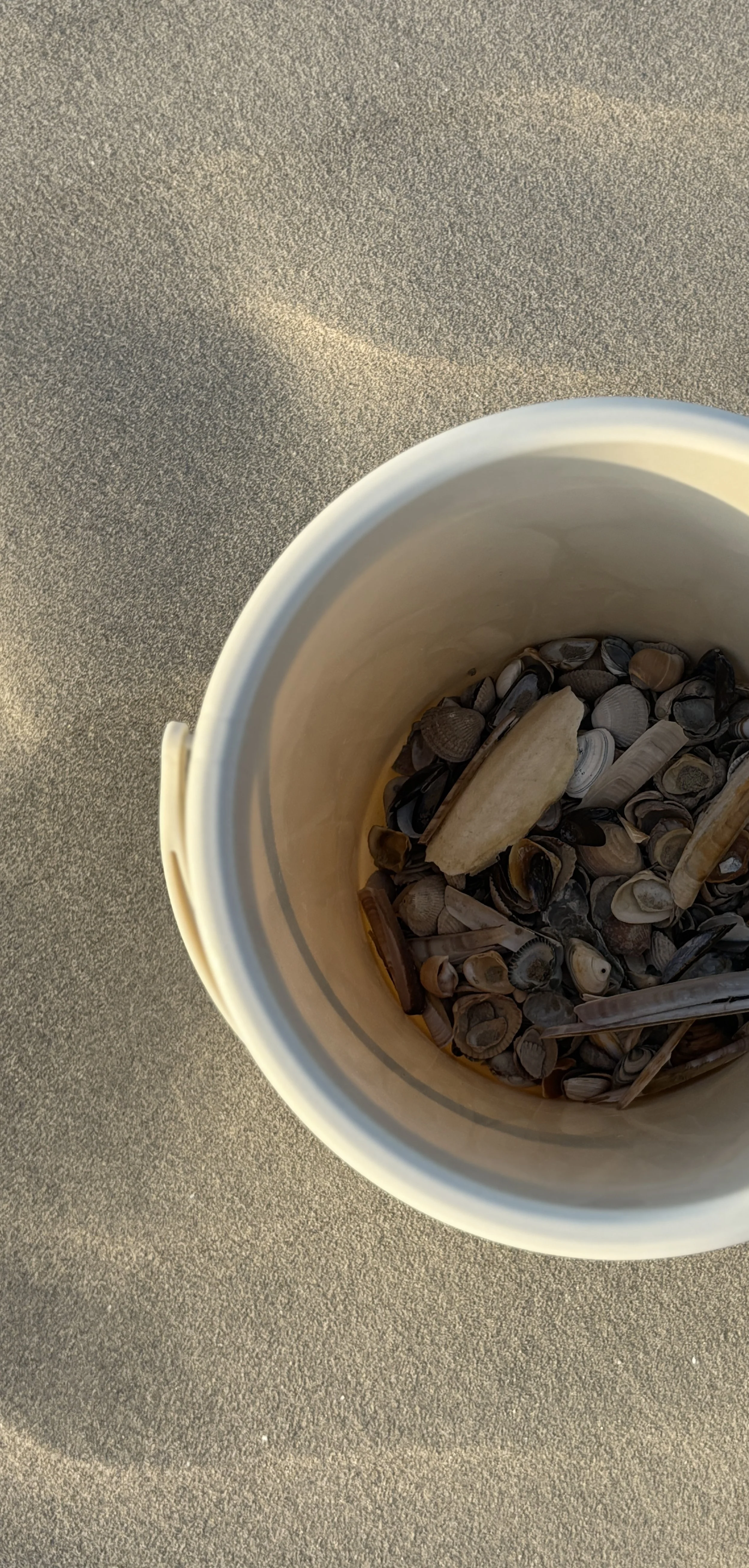 Van Schil naar Schaal (From Shell to Bowl) is an ongoing body of work that transforms local food waste into handmade tableware. Eggshells, oyster shells, pistachio husks, and wood shavings — collected from Rotterdam kitchens and landscapes — are given a second life at the dining table.